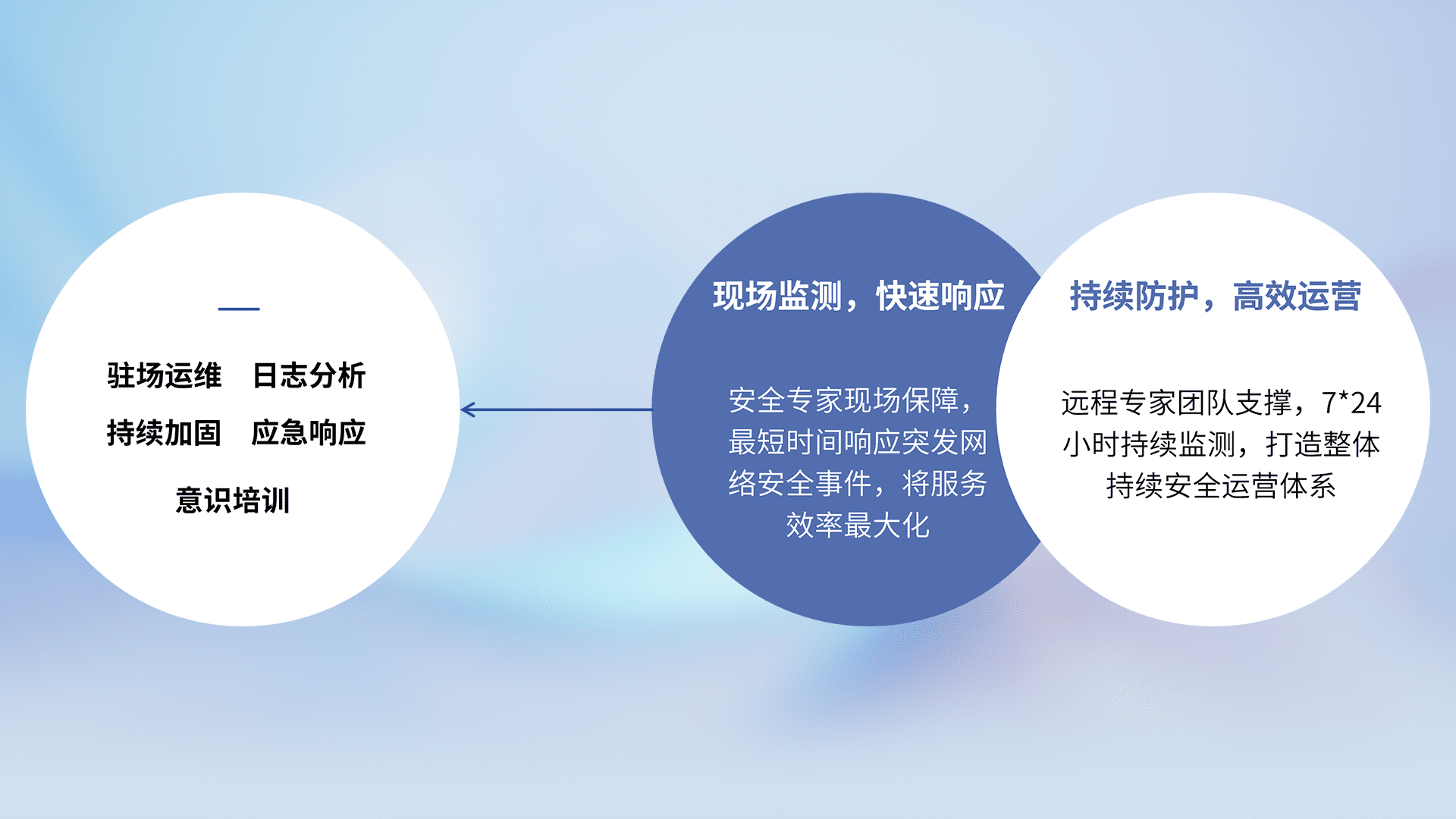 针对客户行业特性,,,提供专属的一站式安全管理服务,,,帮助客户全面感知网络空间威胁,,,,通过安全专家的线上、、、线下防护支持,,实现风险闭环,,,将安全保障常态化,,,为客户打造常态化安全运维运营服务。。